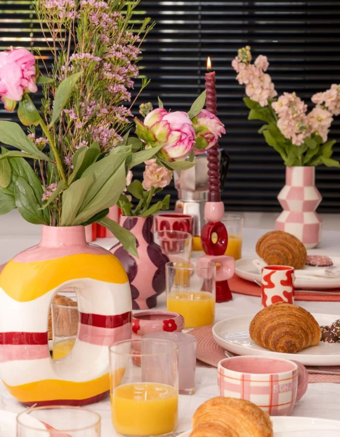 Προσθέστε μια ζωντανή πινελιά στα λουλούδια σας με το κεραμικό βάζο Joaquin. Εμπνευσμένο από τον ζωντανό ισπανικό τρόπο ζωής, διαθέτει το πολύχρωμο μοτίβο Amor Del Color. Με το οργανικό του σχήμα και το ζεστό μείγμα κίτρινου, ροζ και βυσσινί, αυτό το ζωγραφισμένο στο χέρι βάζο είναι πραγματικά εντυπωσιακό. Καθώς είναι ζωγραφισμένο στο χέρι, κάθε κομμάτι είναι μοναδικό.