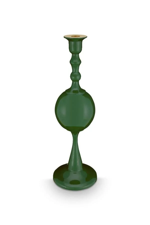 Μεταλλικό κηροπήγιο σε πράσινο χρώμα από την Pip Studio. Δημιουργήστε περισσότερη ατμόσφαιρα στο σπίτι με τα κηροπήγια της Pip Studio. Διακοσμημένα με διαφορετικά σχέδια, όπως σφαίρες στο κυρίως σώμα, είναι ιδανικά για τις εορταστικές συγκεντρώσεις και τα δείπνα. Τοποθετήστε ένα κερί και απολαύστε τη ζεστή λάμψη και την ατμόσφαιρα που δημιουργεί. Ανακατέψτε και ταιριάξτε τα με διάφορα άλλα αντικείμενα της Pip Studio για το σπίτι σας, όπως θήκες τσαγιού, πορσελάνες και κεριά για ένα εκπληκτικό αποτέλεσμα.