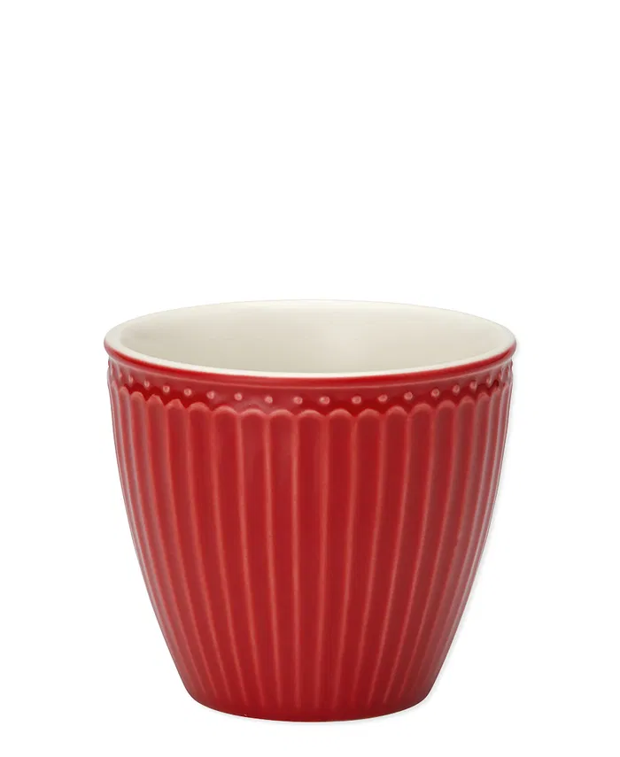 Κούπα χωρίς λαβή της σειράς Alice της GreenGate από υψηλής ποιότητας πορσελάνη σε υπέροχο κόκκινο χρώμα, για να δώσετε ένα νοσταλγικό και ταυτόχρονα γοητευτικό ύφος στον χώρο σας και να σερβίρετε αρωματικό καφέ, τσάι ή γάλα, μοιράζοντας γεύσεις και συναισθήματα στα αγαπημένα σας πρόσωπα. Η σειρά Alice ανήκει στην ευρύτερη συλλογή Everyday που περιλαμβάνει πιάτα, κούπες, φλυτζάνια, ποτήρια και άλλα καθημερινά μοναδικά αντικείμενα σε πολλά υπέροχα χρώματα με ανάγλυφα τελειώματα και ρουστίκ ύφος. Συνδυάστε διάφορα χρώματα μεταξύ τους ή δημιουργήστε υπέροχες συνθέσεις με τα πολύχρωμα κλασικά φλοράλ σχέδια των άλλων σειρών της GreenGate, ντύνοντας με χρώμα την καθημερινότητά σας.