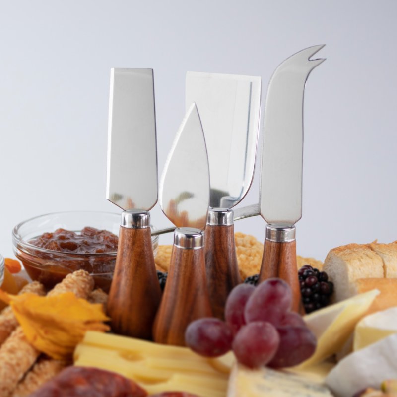 Είτε διοργανώνετε μια συγκέντρωση είτε γιορτάζετε μια ειδική περίσταση, αυτό το σετ τυριών/αλλαντικών φέρνει τους ανθρώπους κοντά όσο τίποτα άλλο. Ενθαρρύνει το μοίρασμα, τη συνομιλία και την εξερεύνηση των γεύσεων, ενισχύοντας την αίσθηση της κοινότητας και της σύνδεσης. Φτιαγμένος από φυσικό σχιστόλιθο και ξύλο ακακίας, αυτός ο εντυπωσιακός πολυεπίπεδος δίσκος συναρμολογείται εύκολα και έχει αντιολισθητικά βοηθήματα στην βάση του. Σίγουρα θα είναι η συζήτηση του τραπεζιού στην συνάντηση σας. Το σετ περιλαμβάνει και τέσσερα μαχαίρια τυριού από ανοξείδωτο ατσάλι : παρμεζάνας, σκληρού τυριού, μαλακού τυριού & μαχαίρι καμπάνα. Όλα με λαβές από φυσικό ξύλο ακακίας σε σχήμα αχλαδιού.