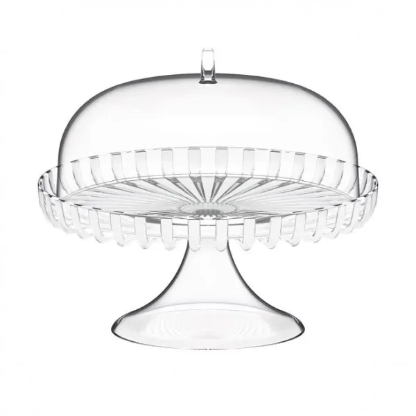 Τουρτιέρα με πόδι της συλλογής Dolce Vita της Guzzini από σύγχρονο οργανικό πλαστικό σε λευκό περλέ χρώμα.