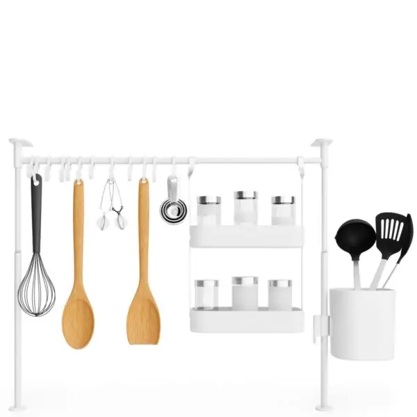 Το Anywhere της Umbra είναι ένα πολυλειτουργικό σύστημα, ιδανικό για την οργάνωση του πάγκου της κουζίνας σας, με ρυθμιζόμενο ύψος (από 38 έως 51 εκατοστά) και πλάτος (από 39 έως 61 εκατοστά), ώστε να προσαρμόζεται απόλυτα στις ανάγκες και τον χώρο σας. Διαθέτει 12 άγκιστρα ανάρτησης, ένα διώροφο ράφι και ρυθμιζόμενο καθ’ ύψος πολυχρηστικό δοχείο για να διατηρείτε οργανωμένα και άμεσα προσβάσιμα πετσέτες, εργαλεία και μικρά σκεύη κουζίνας, καθώς και διάφορα δοχεία αποθήκευσης τροφίμων ή μπαχαρικών. Εγκαθίσταται εύκολα, χωρίς την χρήση εργαλείων και τρυπήματος, ενώ οι μαλακές βεντούζες παρέχουν άριστη στήριξη και προστασία των επιφανειών. Το Anywhere είναι ένα σύγχρονα σχεδιασμένο σύστημα οργάνωσης για σπίτια ή επαγγελματικούς χώρους που αποζητούν έξυπνες και πρακτικές λύσεις για την οργάνωση της κουζίνας.