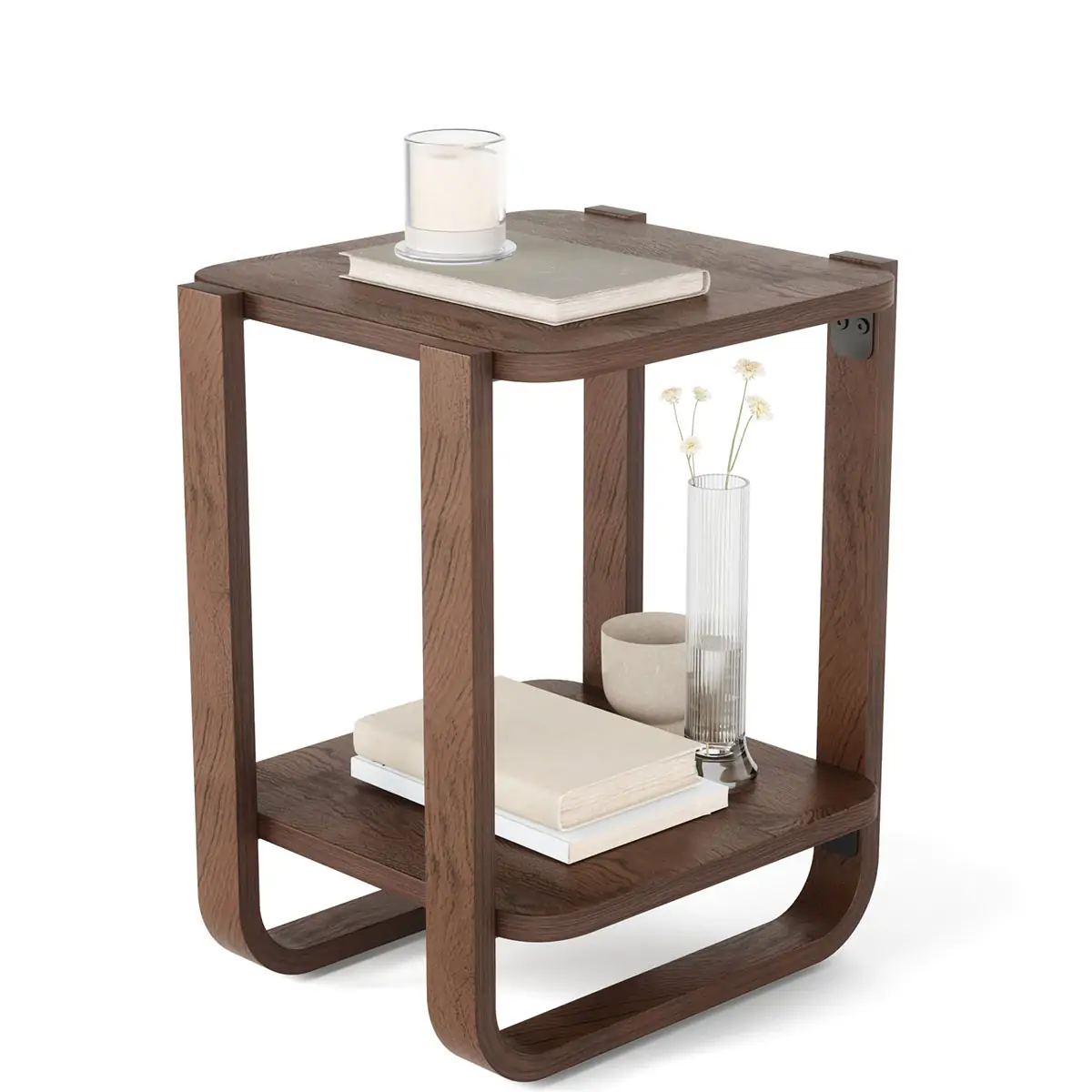 Βοηθητικό τραπεζάκι της συλλογής Bellwood της εταιρείας Umbra κατασκευασμένο από ξύλο κόντρα πλακέ σε απόχρωση παλαιωμένης καρυδιάς.