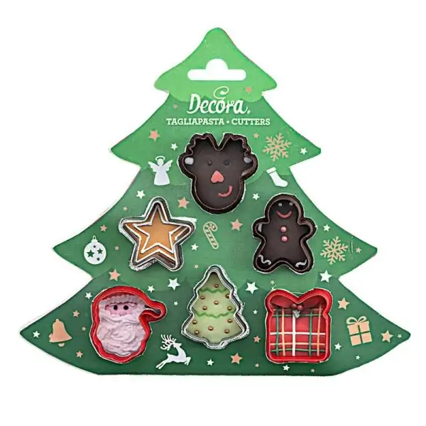 Υψηλής ποιότητας συνθετικοί μίνι κόφτες μπισκότων της ιταλικής εταιρείας Decora, με χριστουγεννιάτικο θέμα για να δώσετε στο τραπέζι σας γιορτινή ατμόσφαιρα. Περιλαμβάνει: τάρανδο, αστέρι, ανθρωπάκι, Άγιο Βασίλη, χριστουγεννιάτικο δέντρο και δώρο.