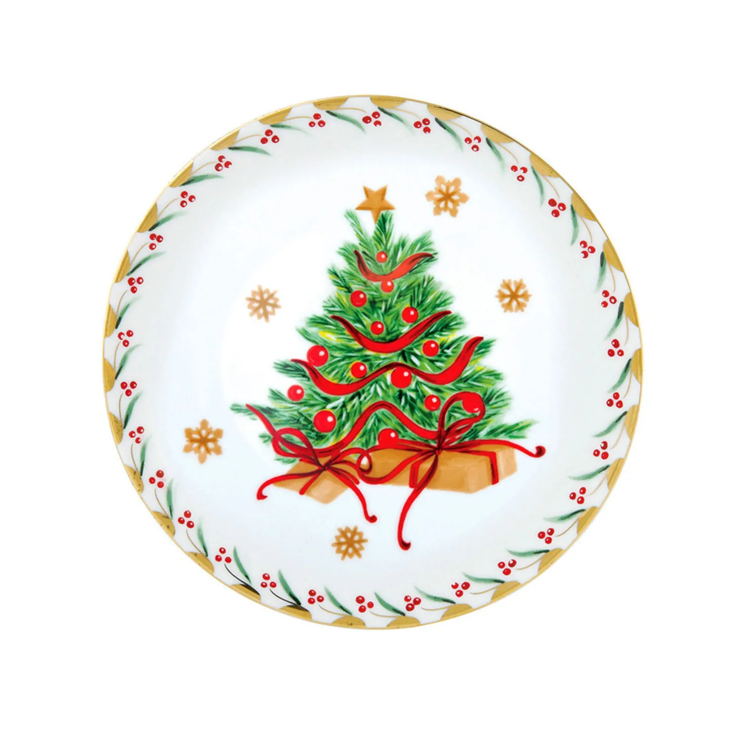 Πιάτο γλυκού της συλλογής Noel της Ιωνία από πορσελάνη εξαιρετικής ποιότητας με φινίρισμα χρυσού.