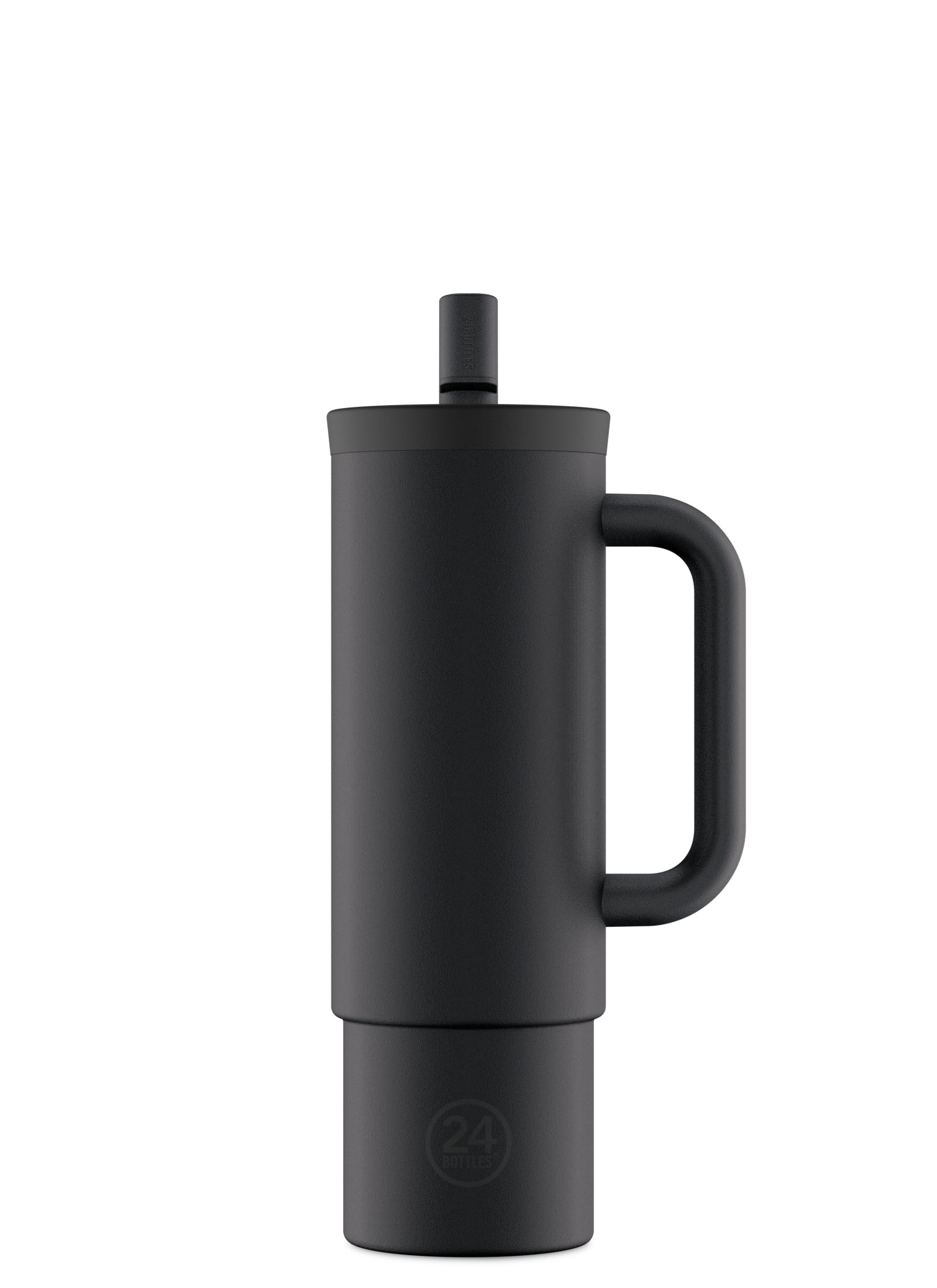 Ισοθερμικό μπουκάλι Straw Cup της εταιρείας 24Bottles® σε μαύρο χρώμα, λαβή και ενσωματωμένο καλαμάκι.
